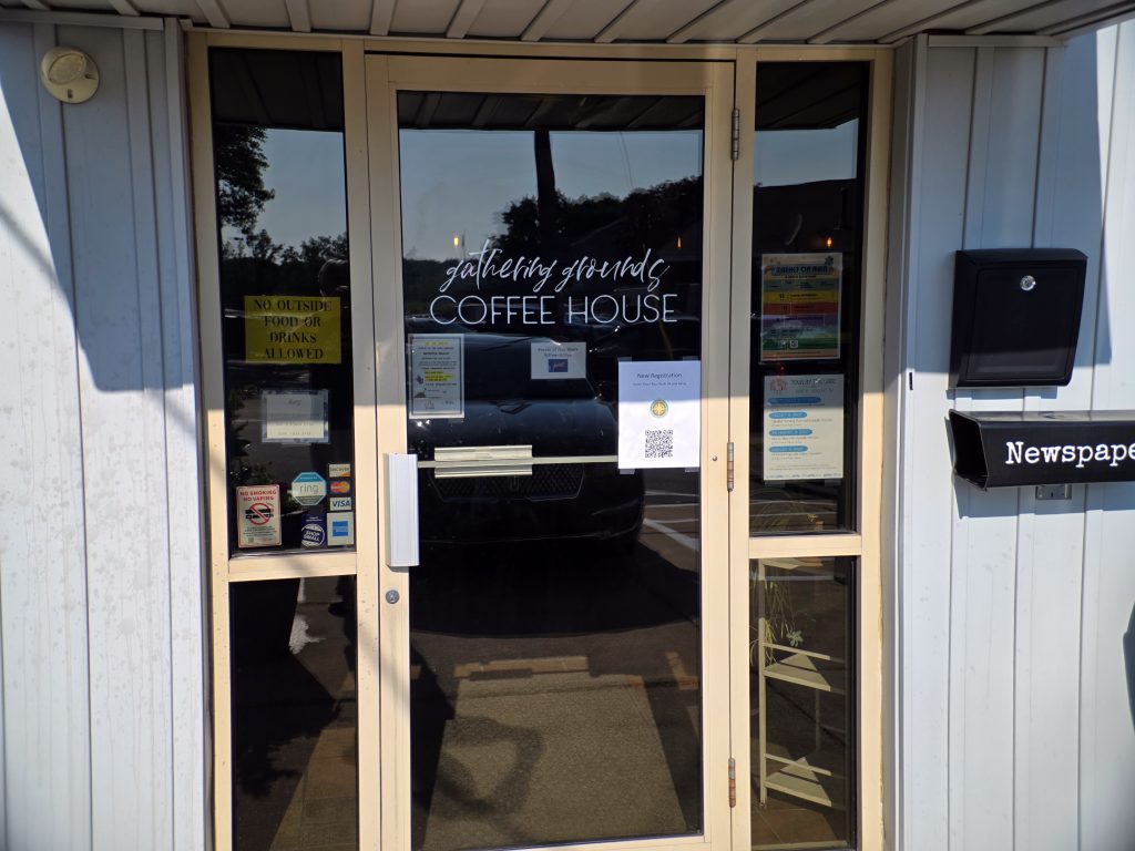 Cozy quiet lounge inside The Gathering Grounds coffee shop with seating area.
